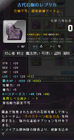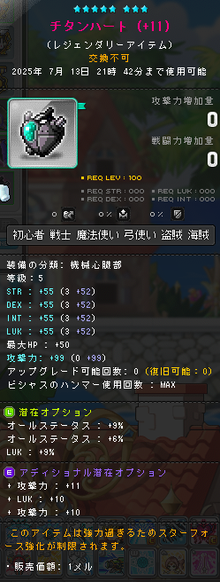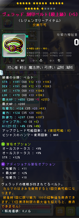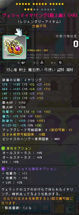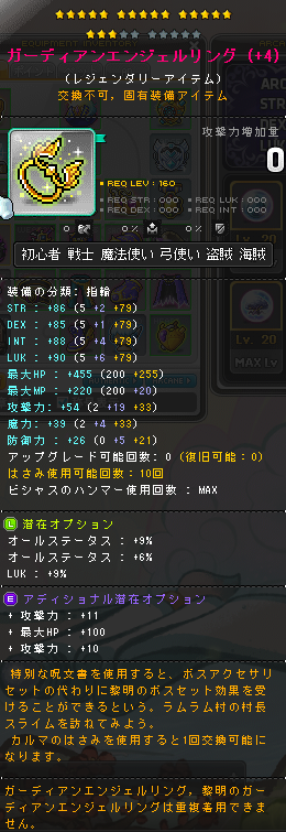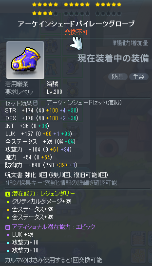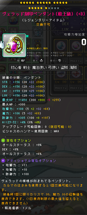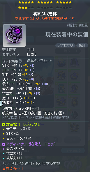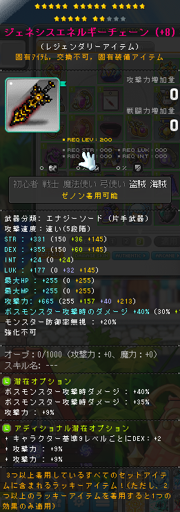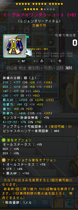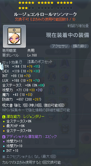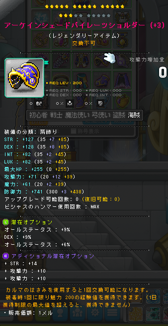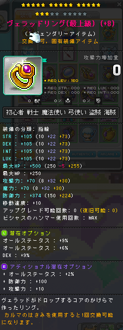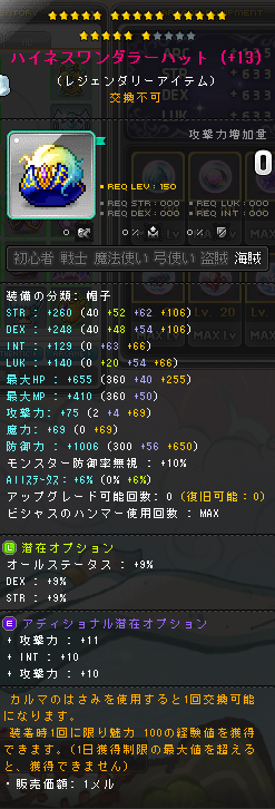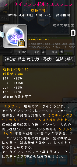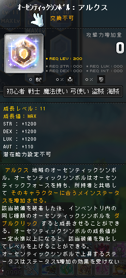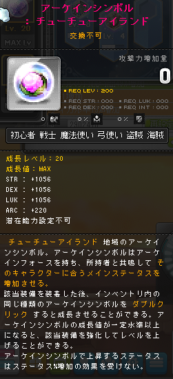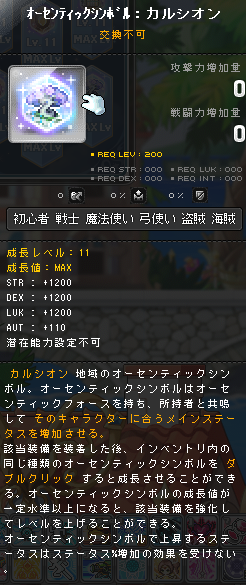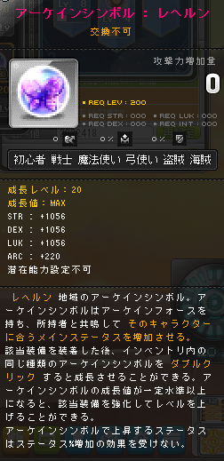 | HEXAステータス | ステータスコアIII | 20 | STR/DEX/LUK | 08 | +624 | ||||||||||||||||||||||||||||||||||||||||||||||