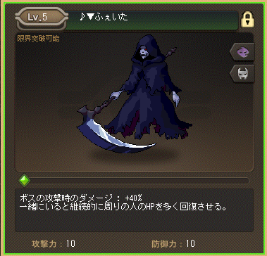 - | 金獲得量10% | 周りHPMP15% 周りHP10% |